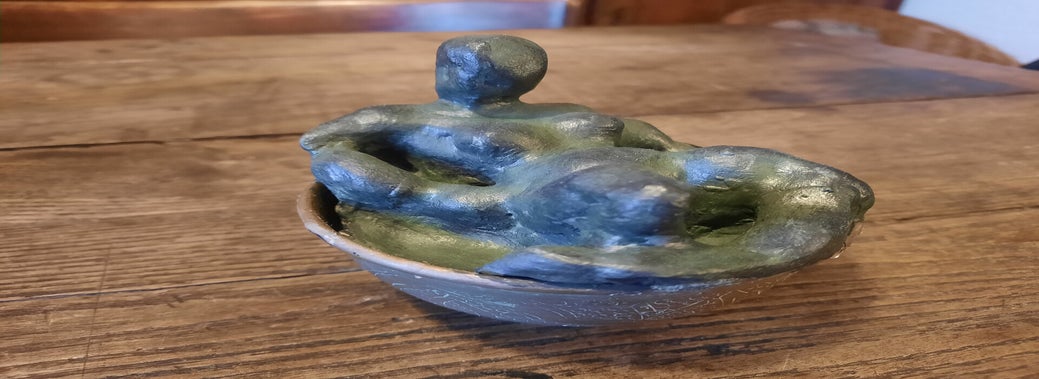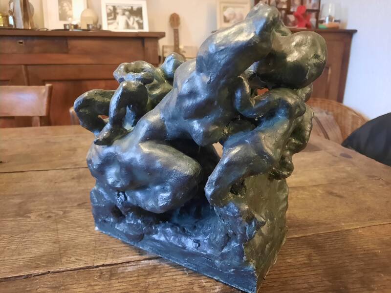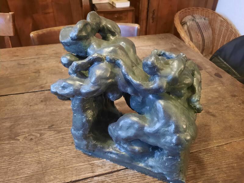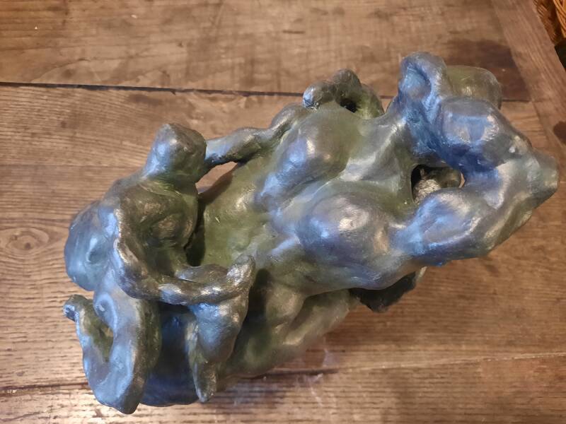 "Femme supportant la création d'Adam" (tentative de se délivrer du patriarcat). Argile patiné. Août 2025.
